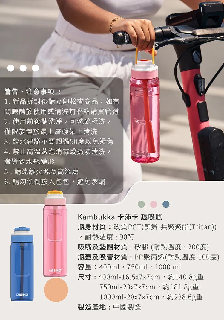 全新升級防漏水瓶,附攜帶掛環與舒適握把,單手即可飲用