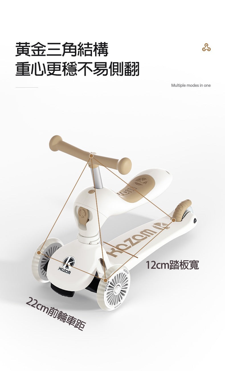 三合一小童款滑步車+最多原廠配件 奶茶色新色上市