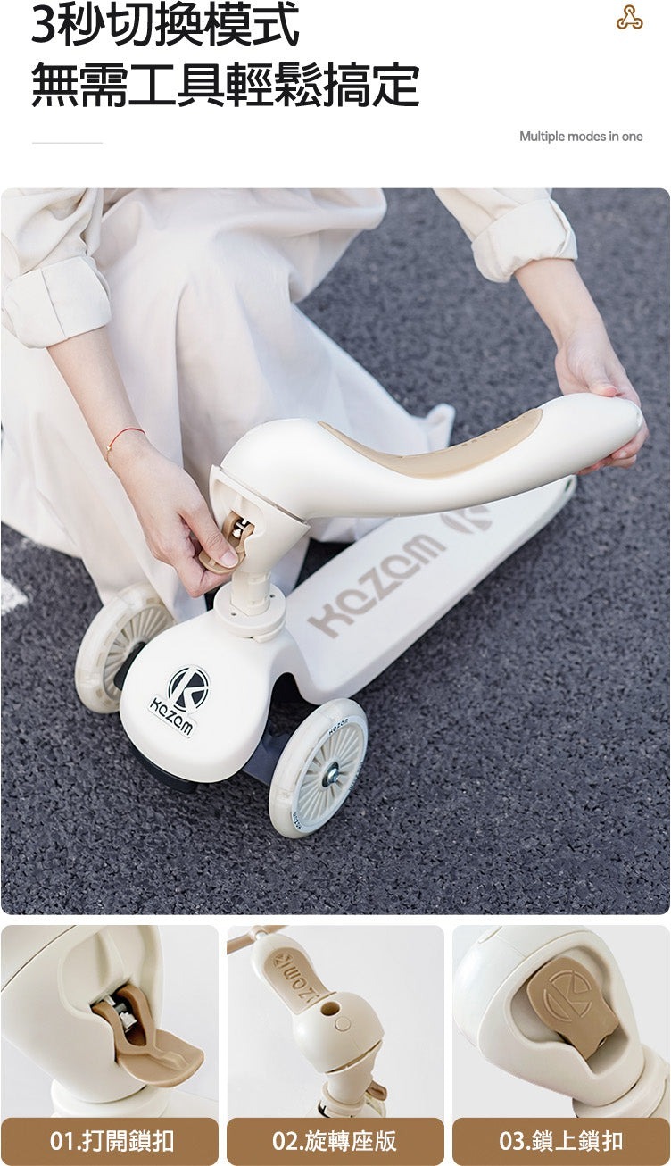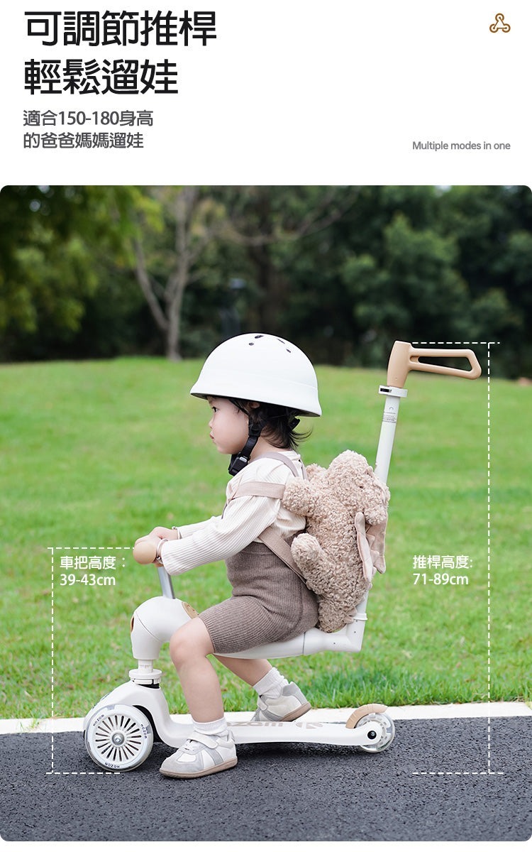 四合一小童款滑步車+最多原廠配件 奶茶色新色上市