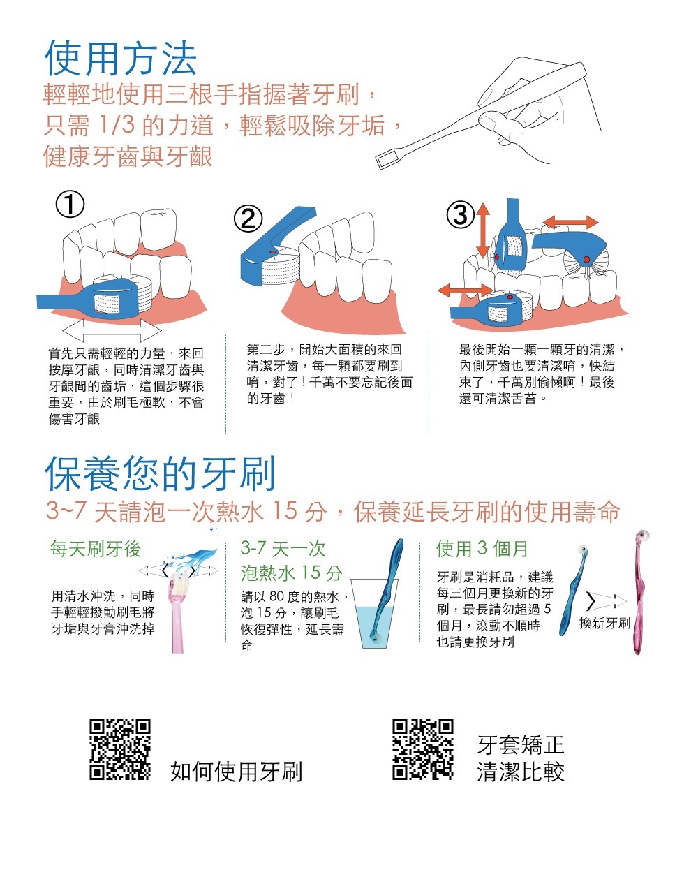 本產品“mini咕嚕潔淨牙刷”非常適合已經開始長牙的兒童、小嘴的成人以及牙齒不齊的成人。 兒童使用時,父母或監護人應根據需要協助使用本產品。