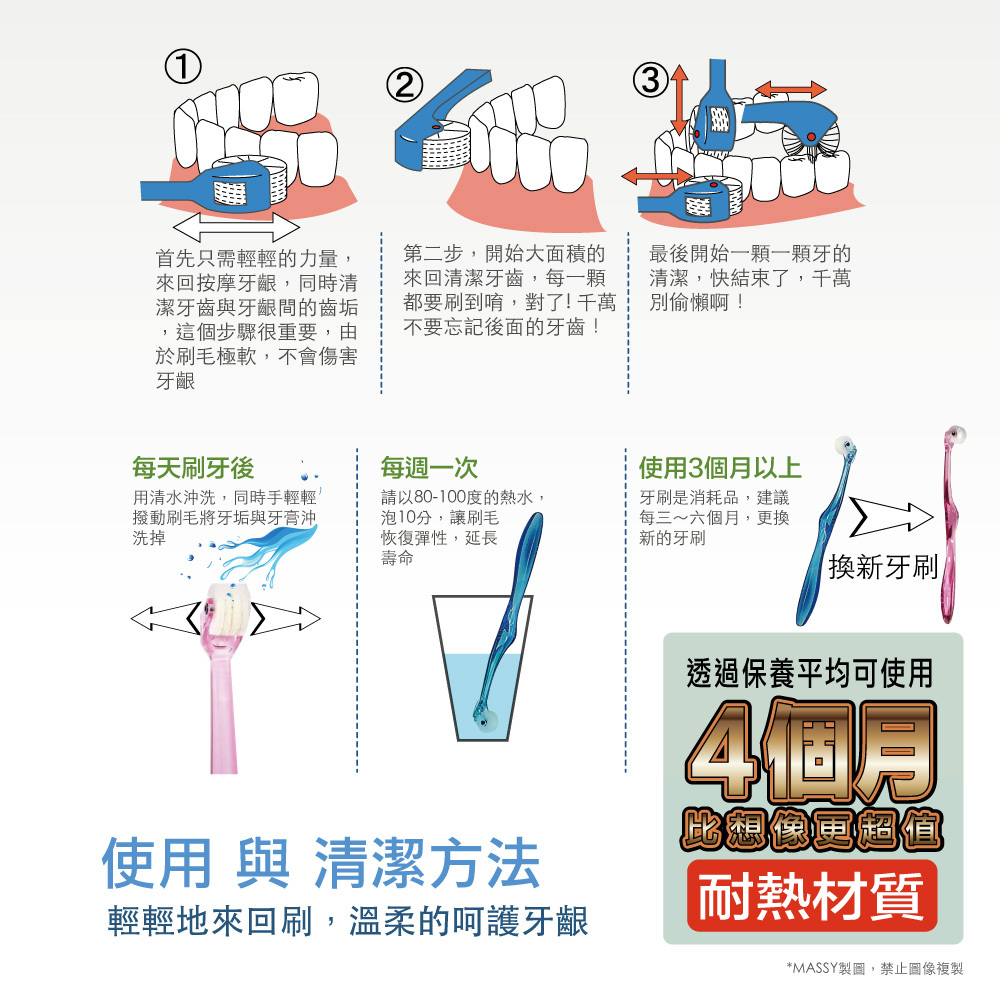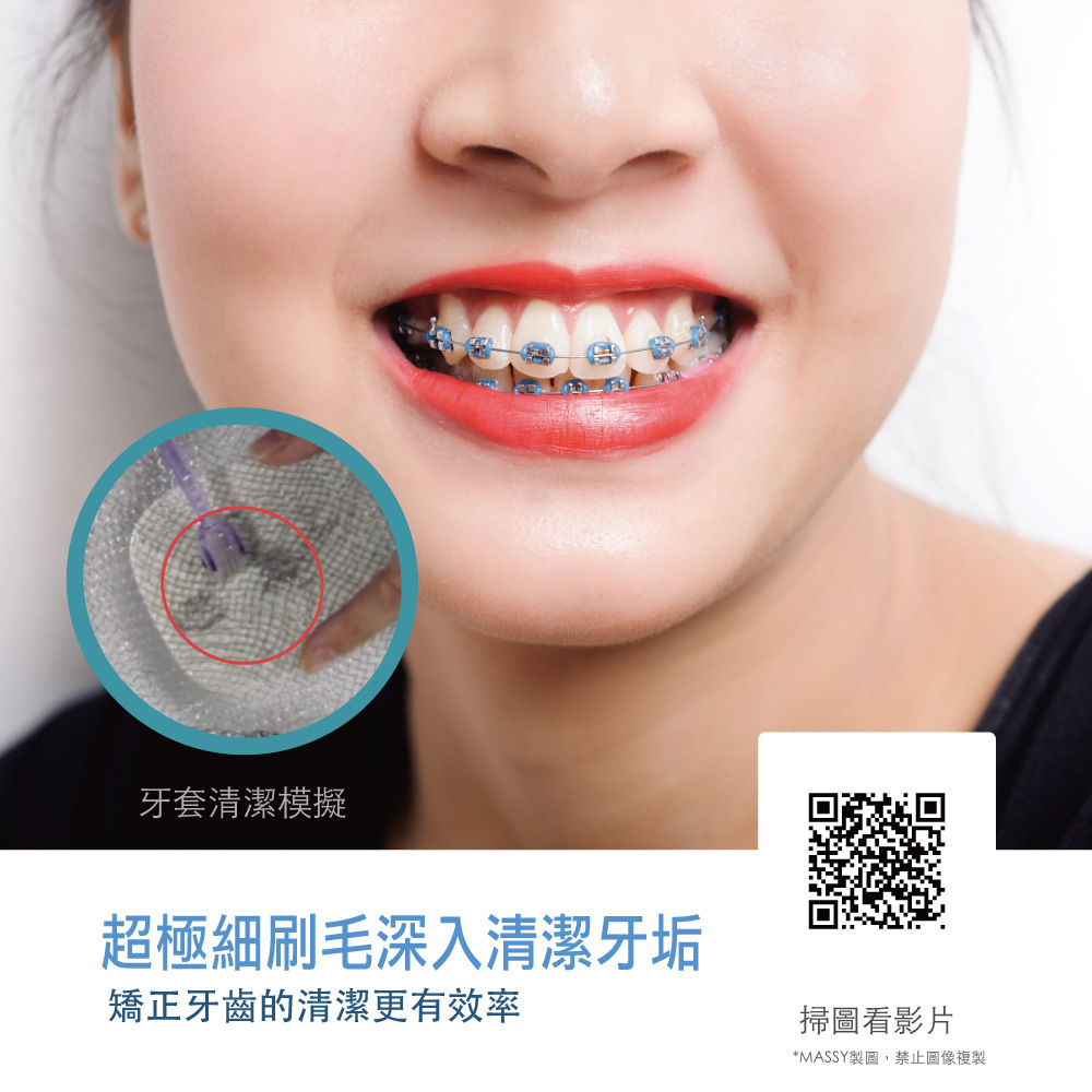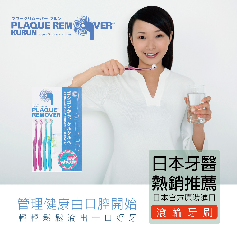 當滾動牙刷時,高密度植毛的滾輪牙刷,可清除與牙周病有緊密關聯的的牙垢