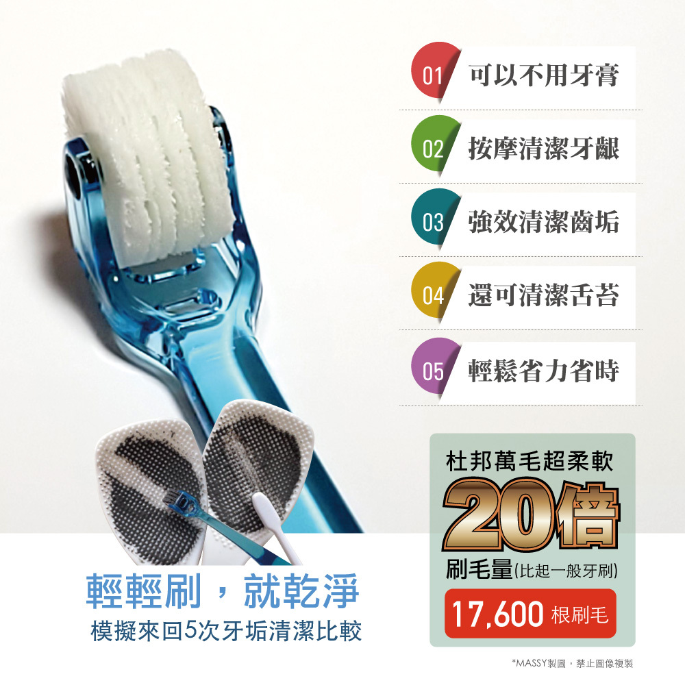 傳統牙刷是用刷的,滾輪牙刷是用吸的
