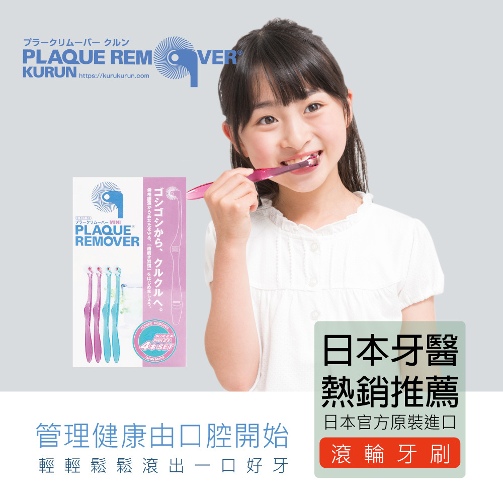 當滾動牙刷時,高密度植毛的滾輪牙刷,可清除與牙周病有緊密關聯的的牙垢