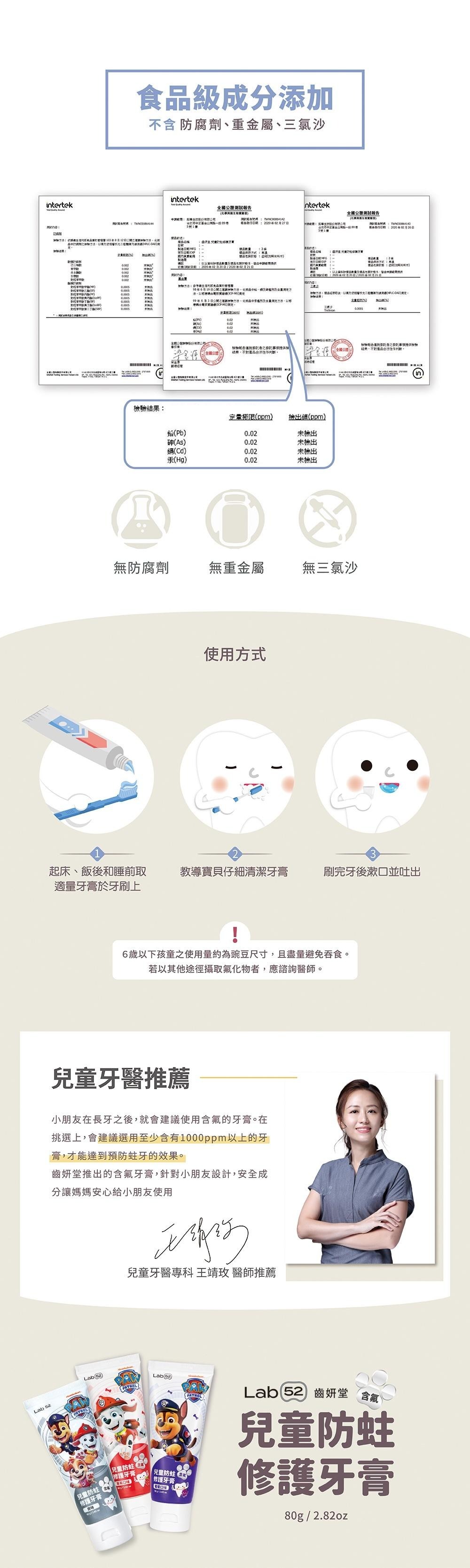 ‧ 含氟量約為1200ppm,幫助預防蛀牙