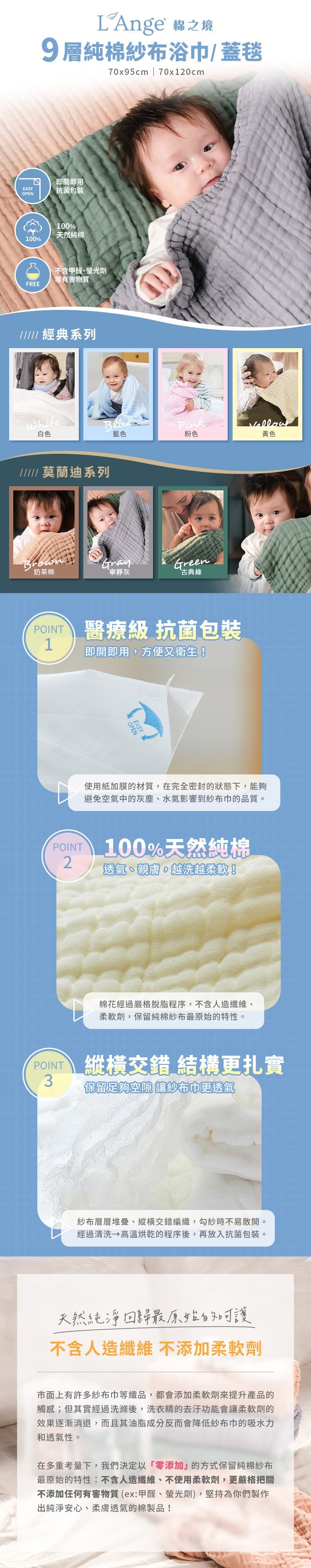 |L'Ange 棉之境 9層純棉紗布浴巾/蓋毯70x95cm (多款可選)|