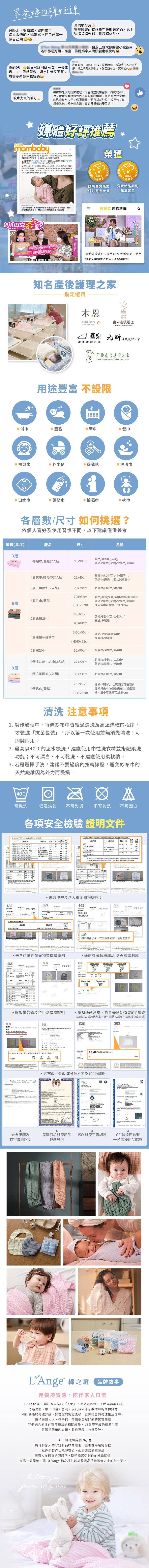 層層把關每一道製作過程,提供最高品質的產品。商品經過清洗及高溫烘乾再放入「抗菌包裝」,即開即用不用另外清洗,感受最天然與純淨的觸感!