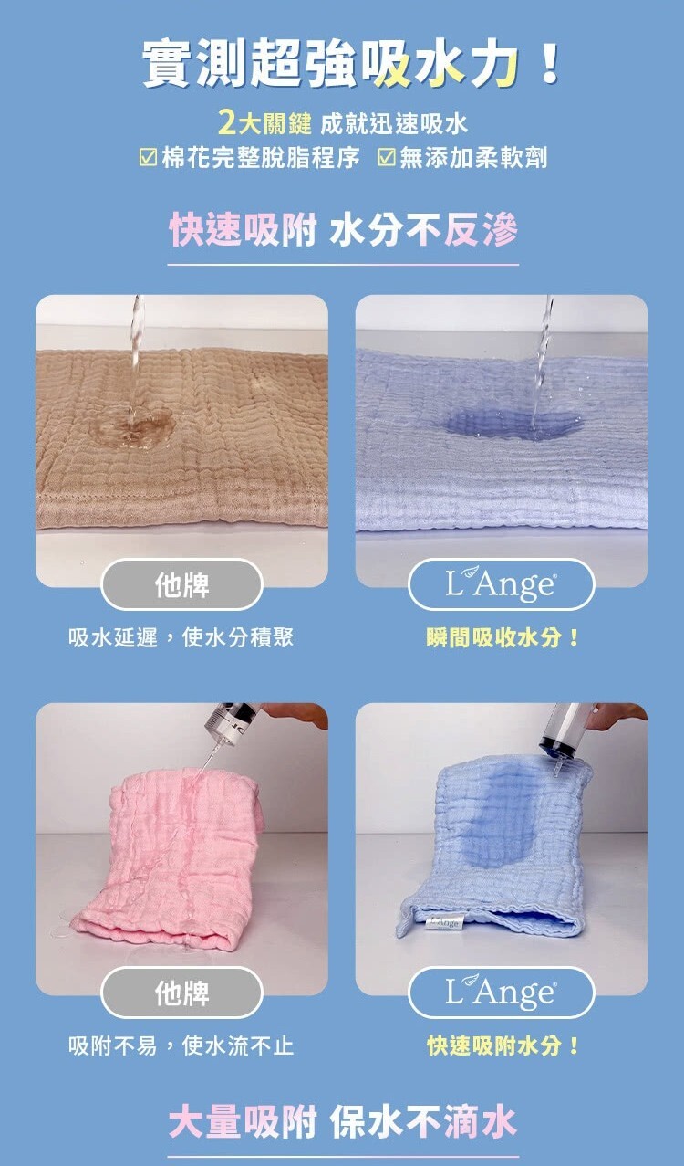 嚴選棉花及脫脂程序,縱橫交錯編織而成,透氣、快乾且吸水性極佳!可快速帶走多餘水分,日常使用性極高。