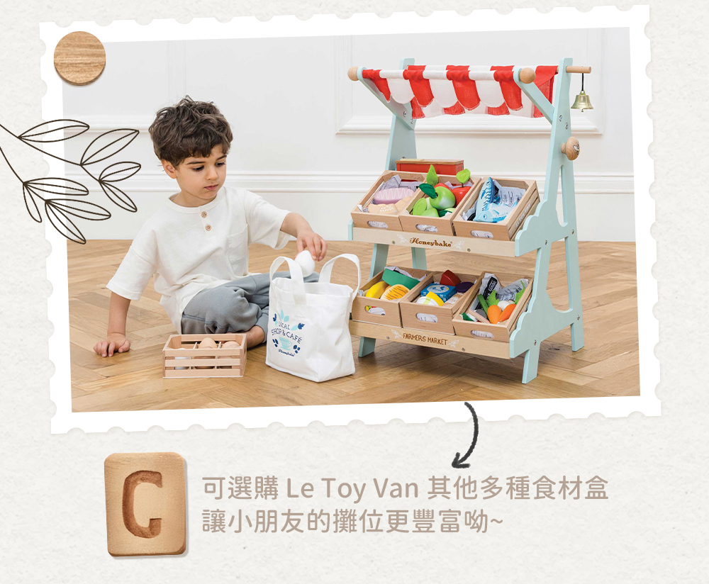 。可以選購 Le Toy Van 其他多種食材盒,讓小朋友的攤位更豐富呦~~