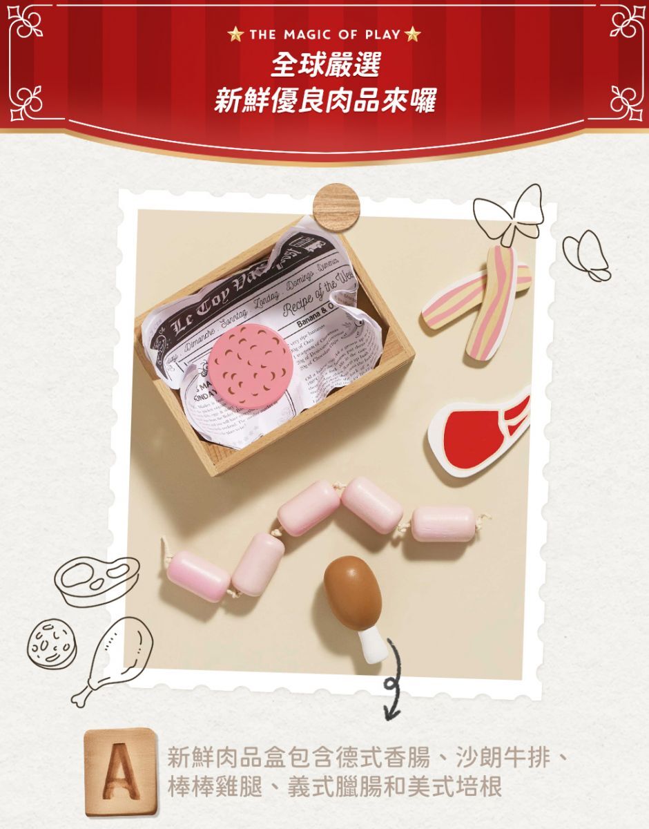 。可與 "市集攤位大型玩具組" 相容,變成販賣的新鮮肉品盒