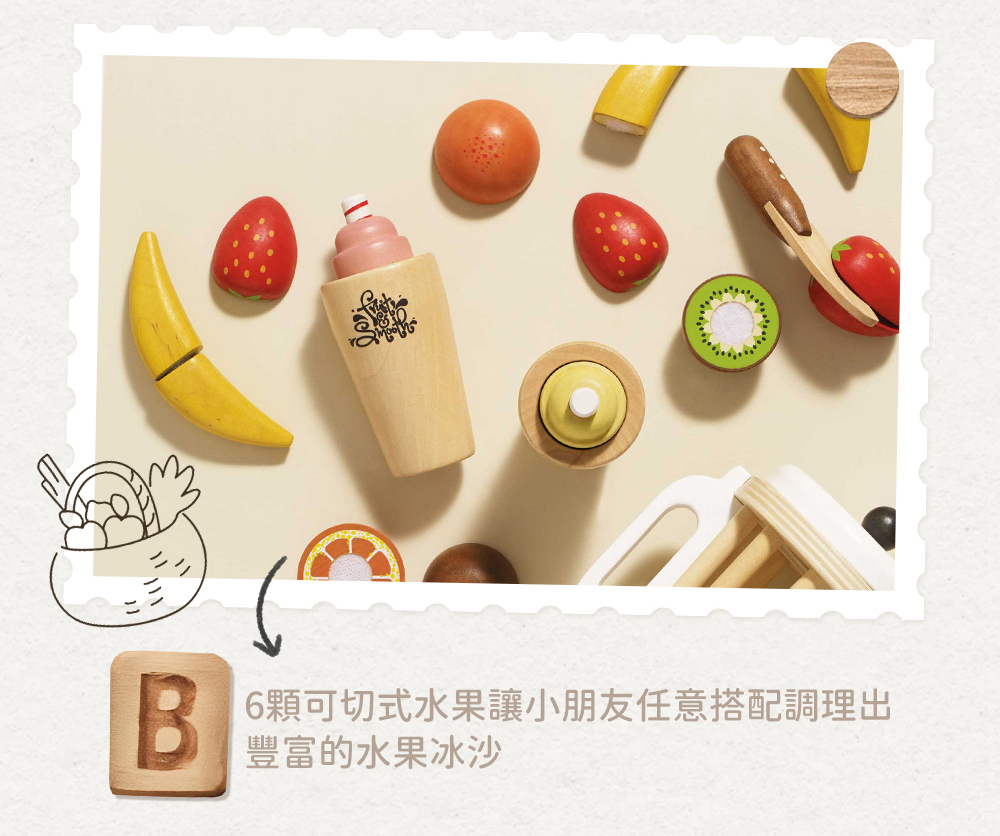 。6種可切式水果讓小朋友任意搭配調理出豐富的水果冰沙