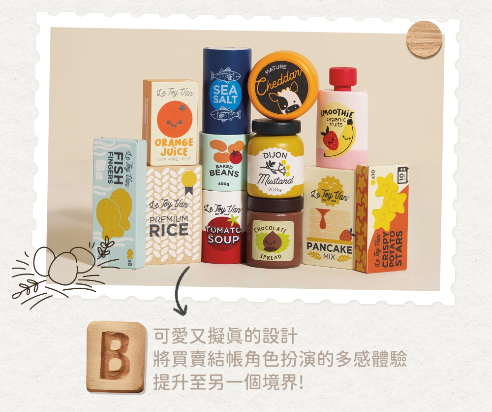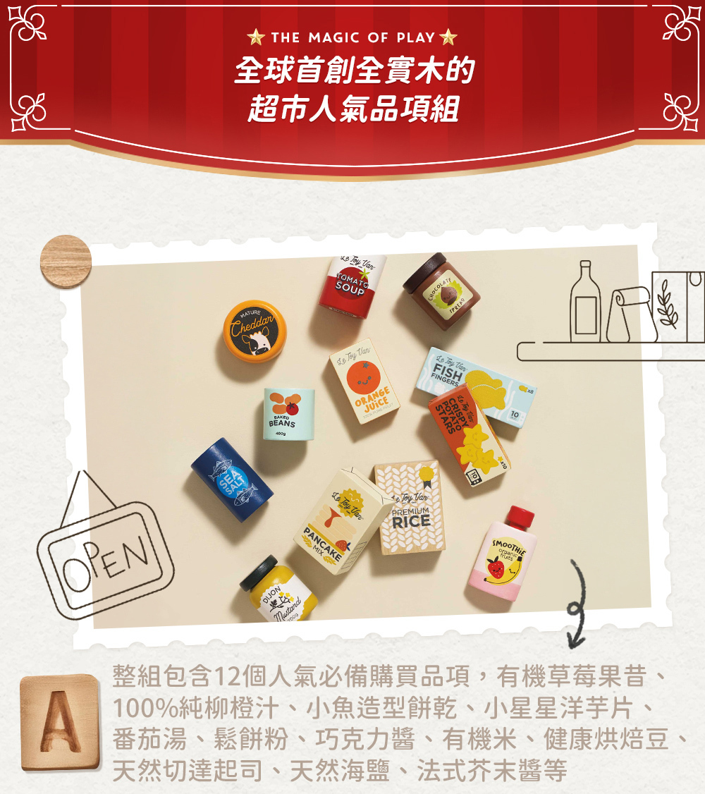 。全球首創全實木的超市人氣品項組,將買賣結帳角色扮演的多感體驗,提升至另一個境界
