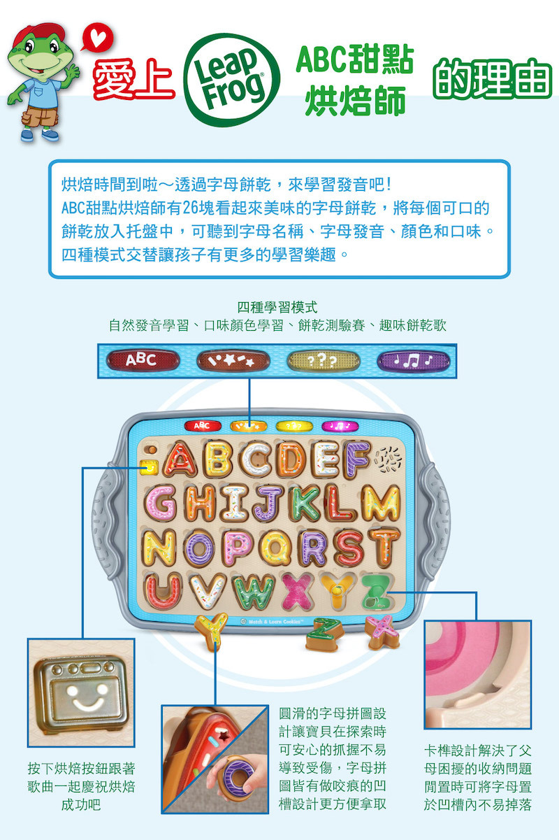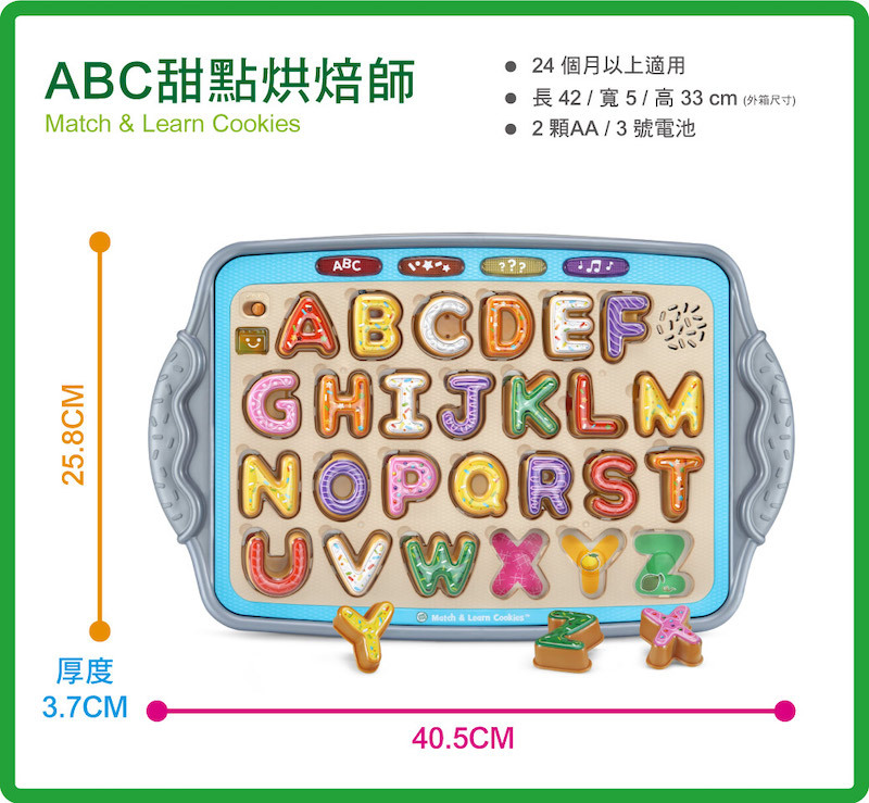 *探索26種彩色餅乾字母,還能裝扮甜點師遊戲,透過角色扮演,激發想像力與創造力