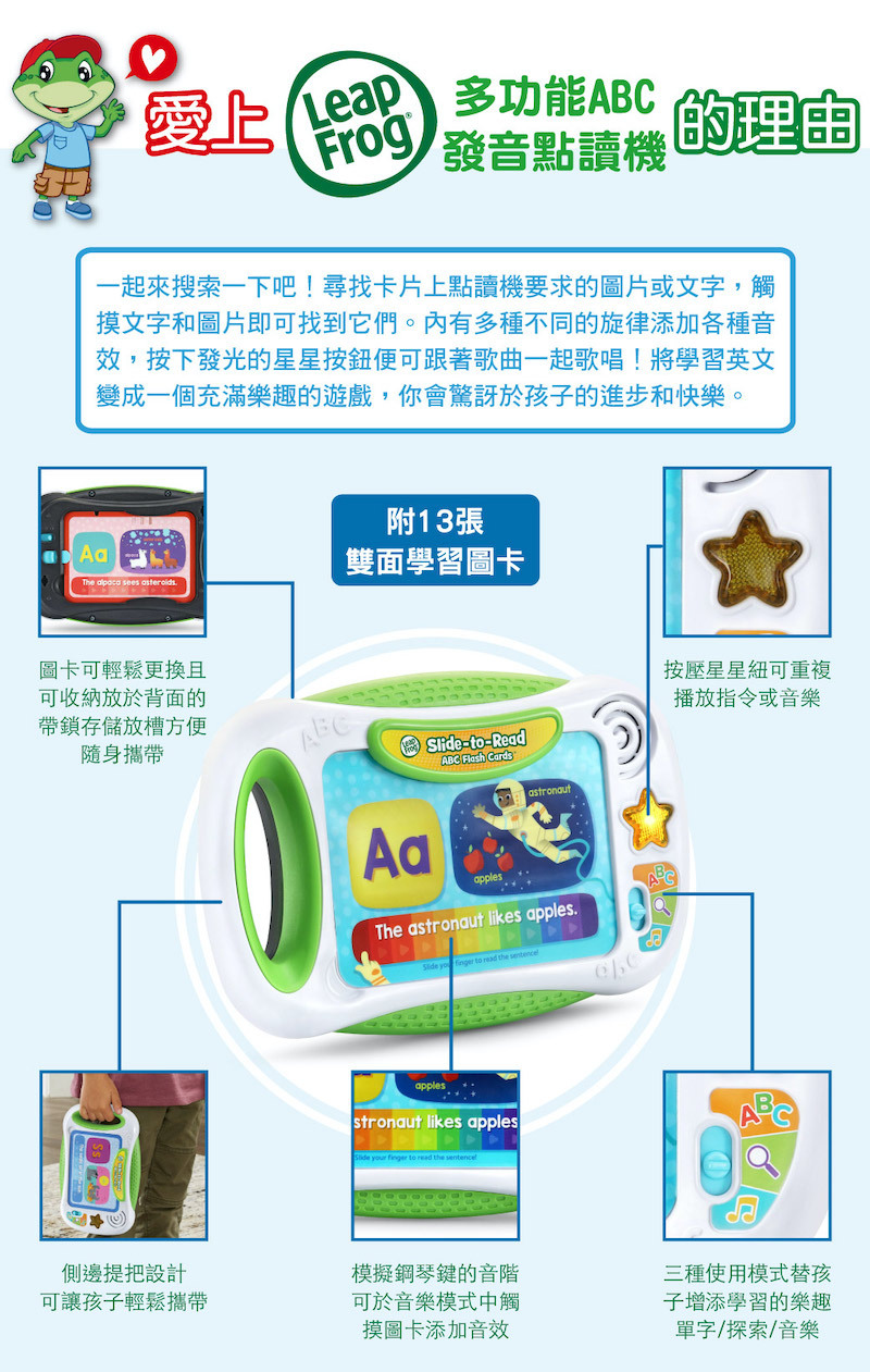 *將圖卡放置點讀機上,手指輕滑過圖卡,點讀機即會朗讀圖卡上的內容