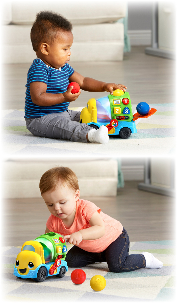 來放放看藍球+紅球卡車會變成什麼顏色呢?