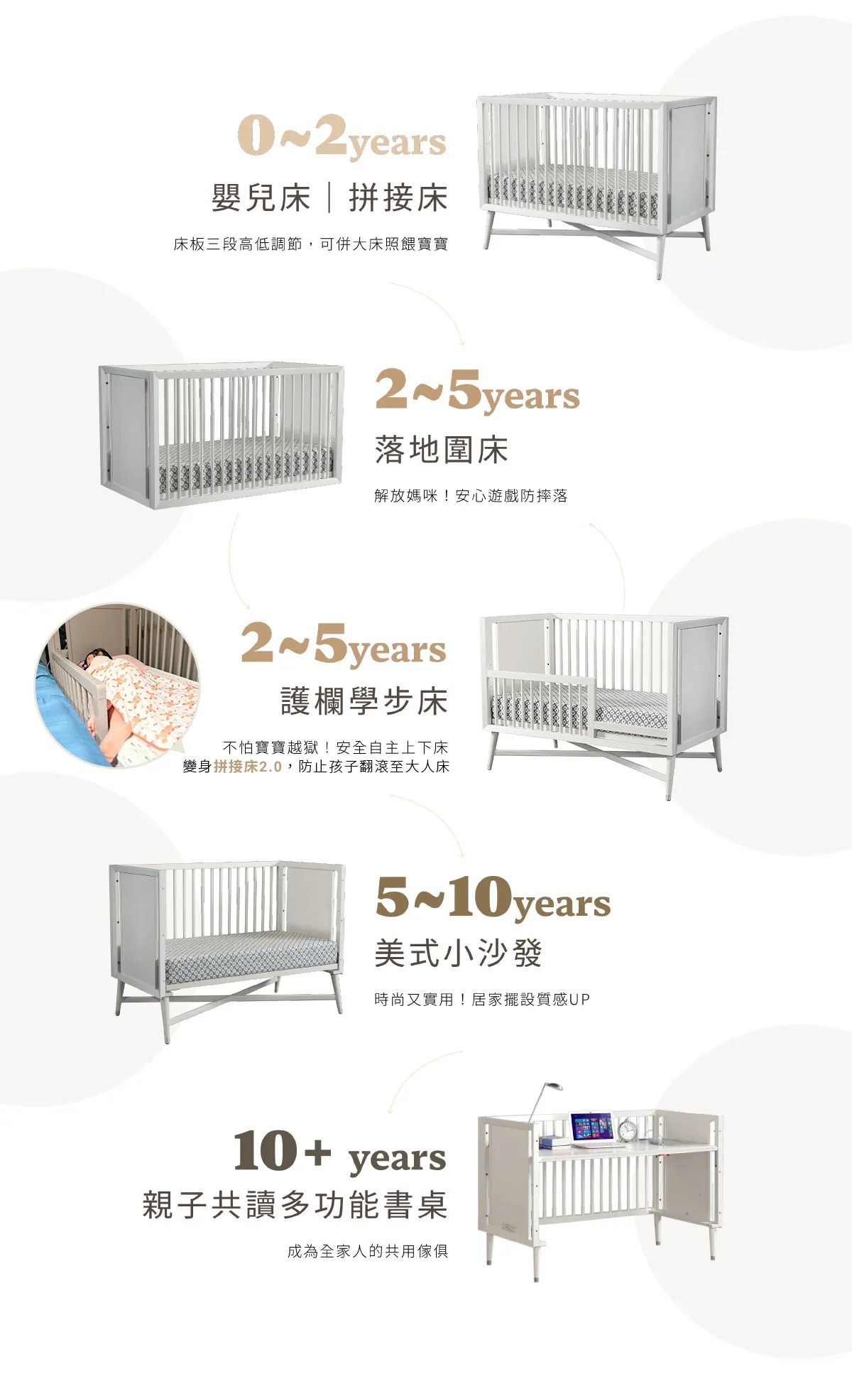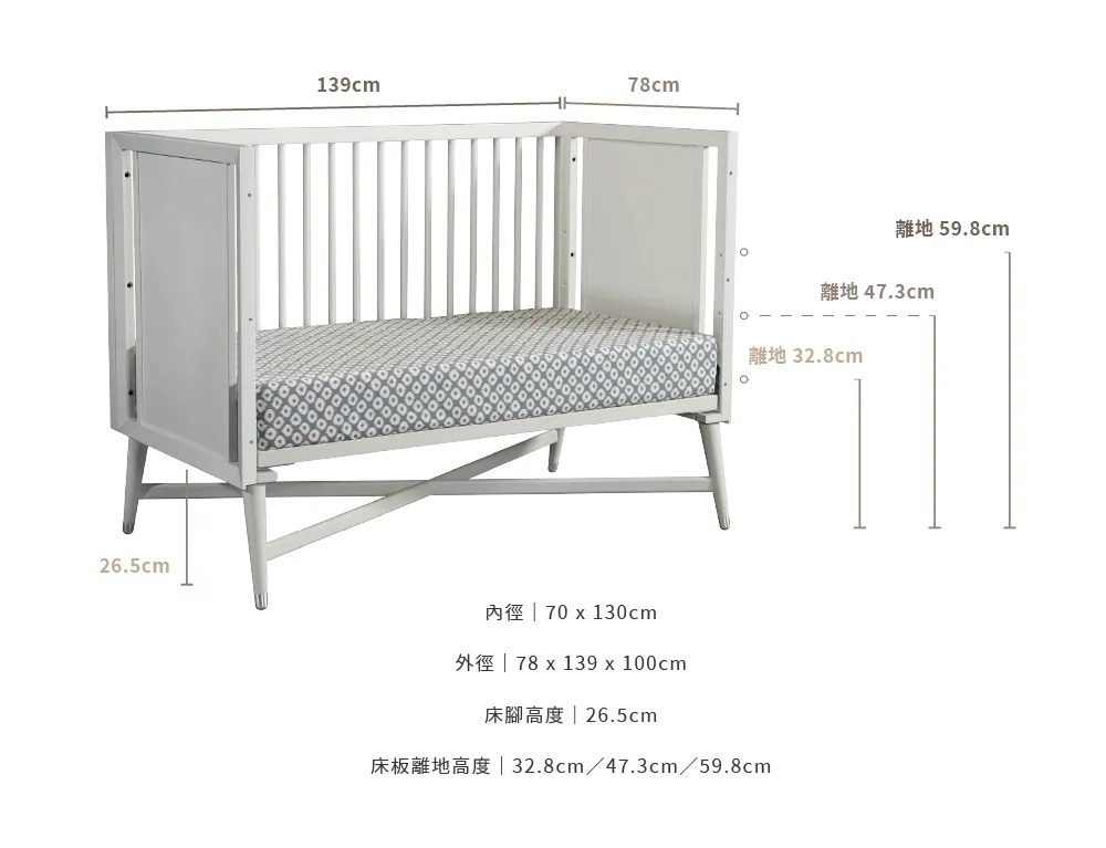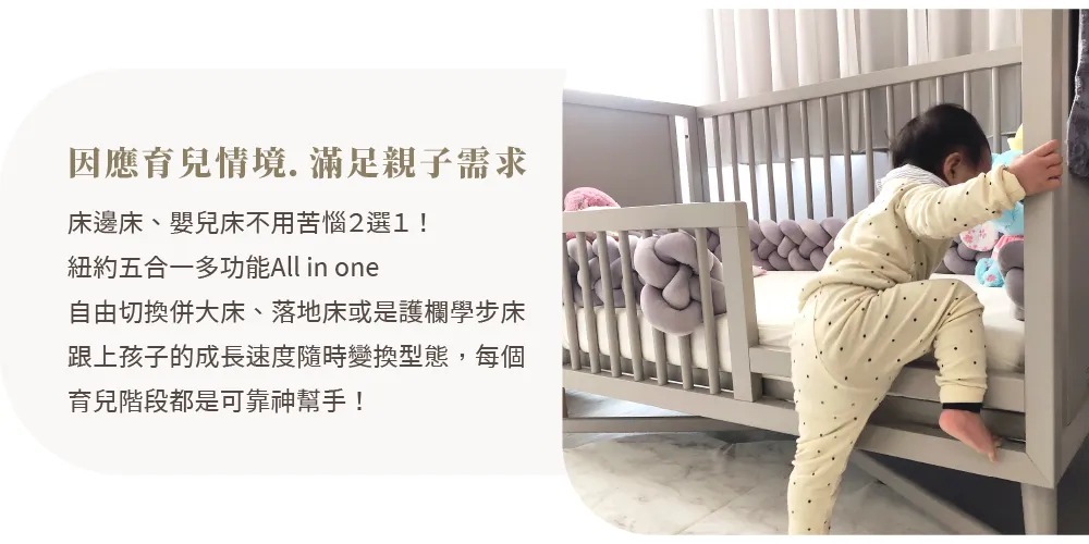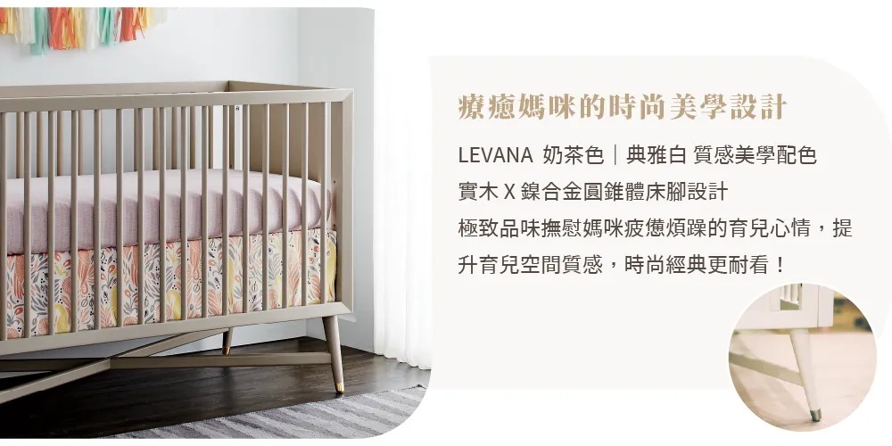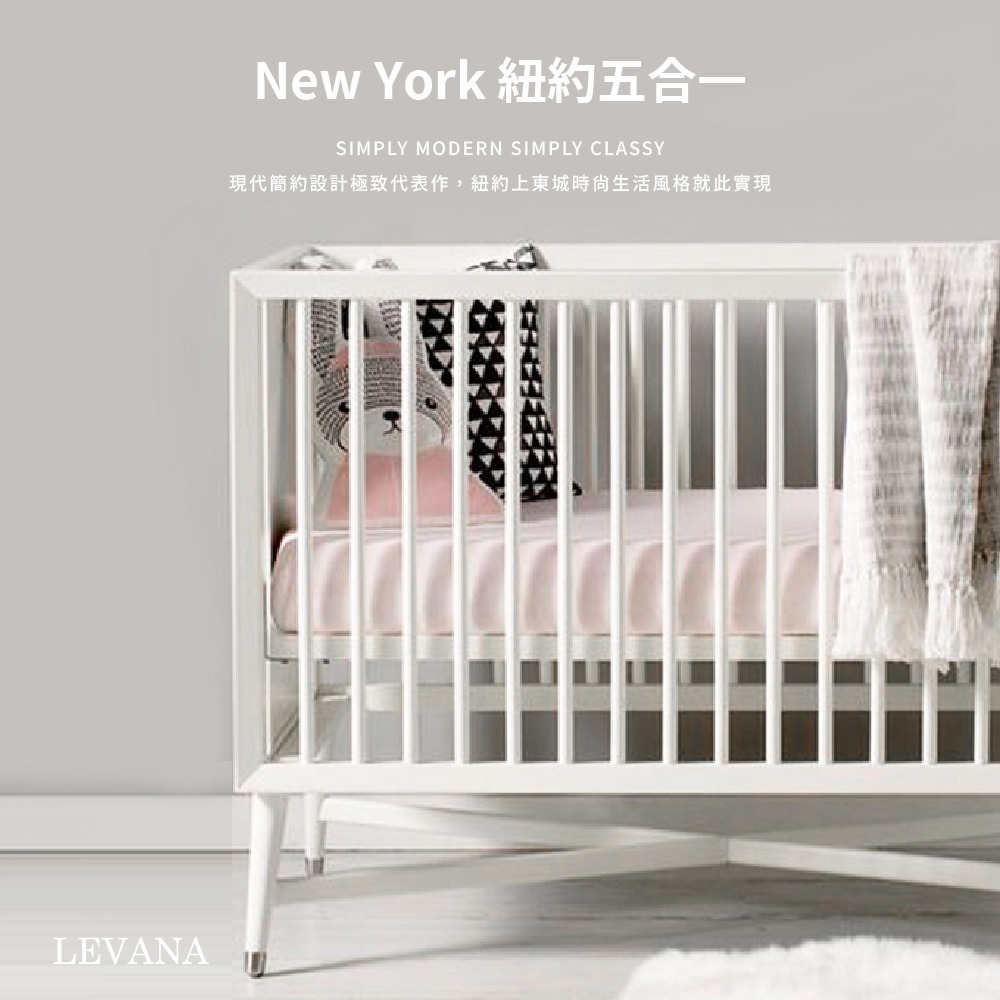 X底座交叉與鎳合金圓錐體的床腳設計,紐約五合一設計款為追求生活極致品味的爸媽,創造一個時尚、雋永的紐約上東城區傢俱設計風格。