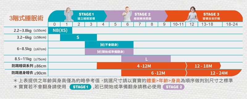 請依寶寶的體重→年齡→身高為順序挑選合適的尺寸