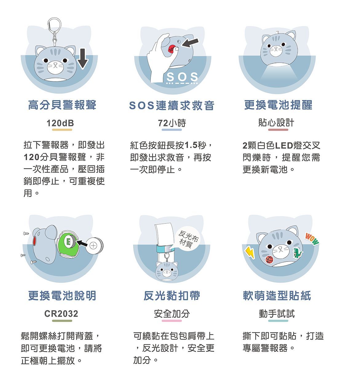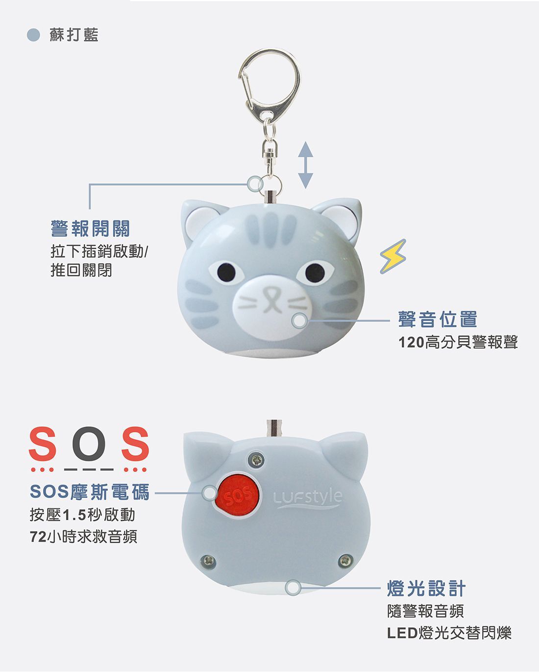 120高分貝警報音, 一拉即響!嚇走壞人,吸引旁人注意即時救援!