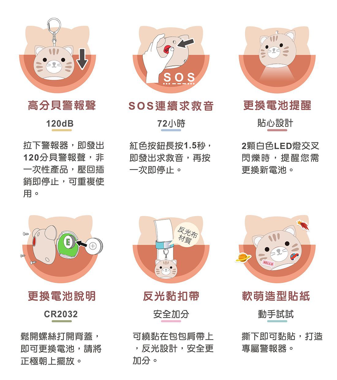 120高分貝警報音, 一拉即響!嚇走壞人,吸引旁人注意即時救援!