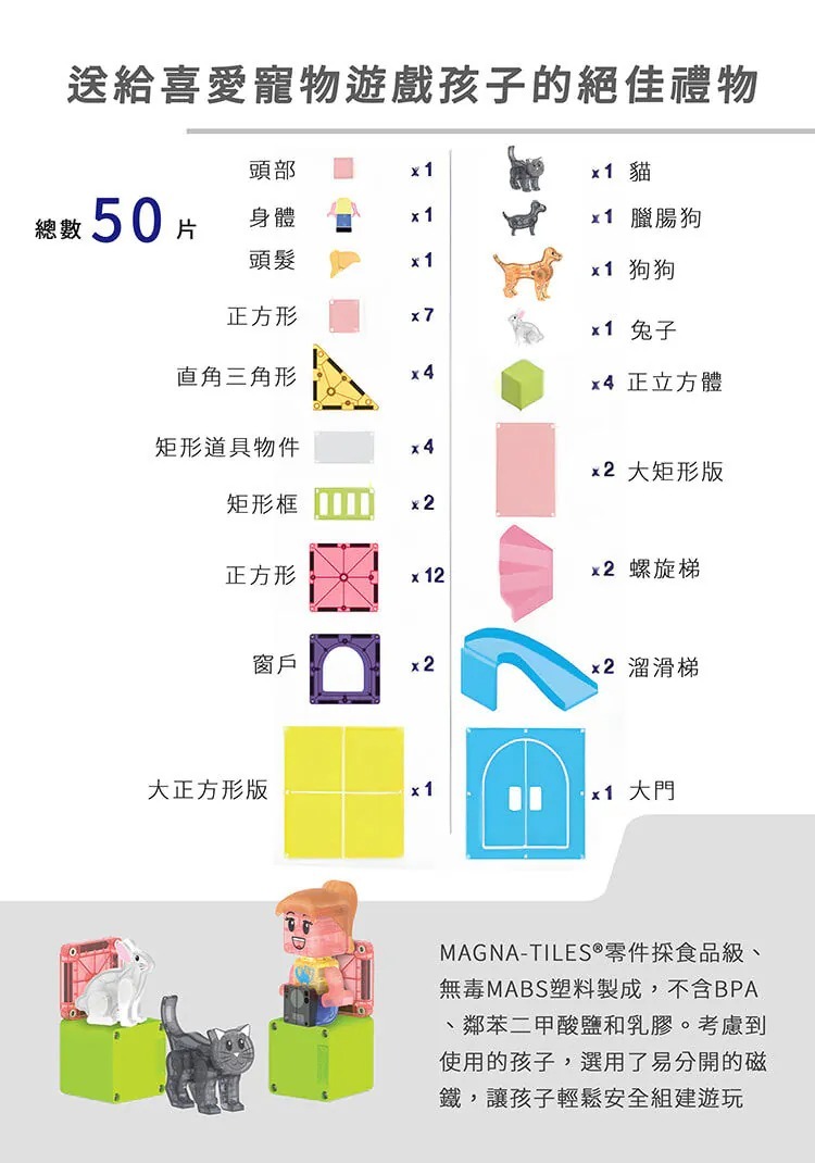Magna-Tiles®Combo 磁力積木-50片寵物遊戲屋