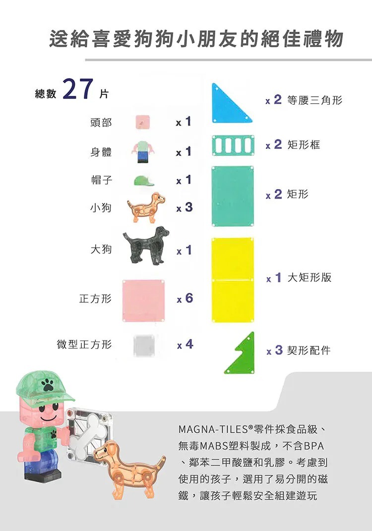 不論是動物控小朋友還是初次接觸磁力積木的孩子,都會一玩愛上!家長也能安心加入,親子一起打造狗狗的夢想家園!
