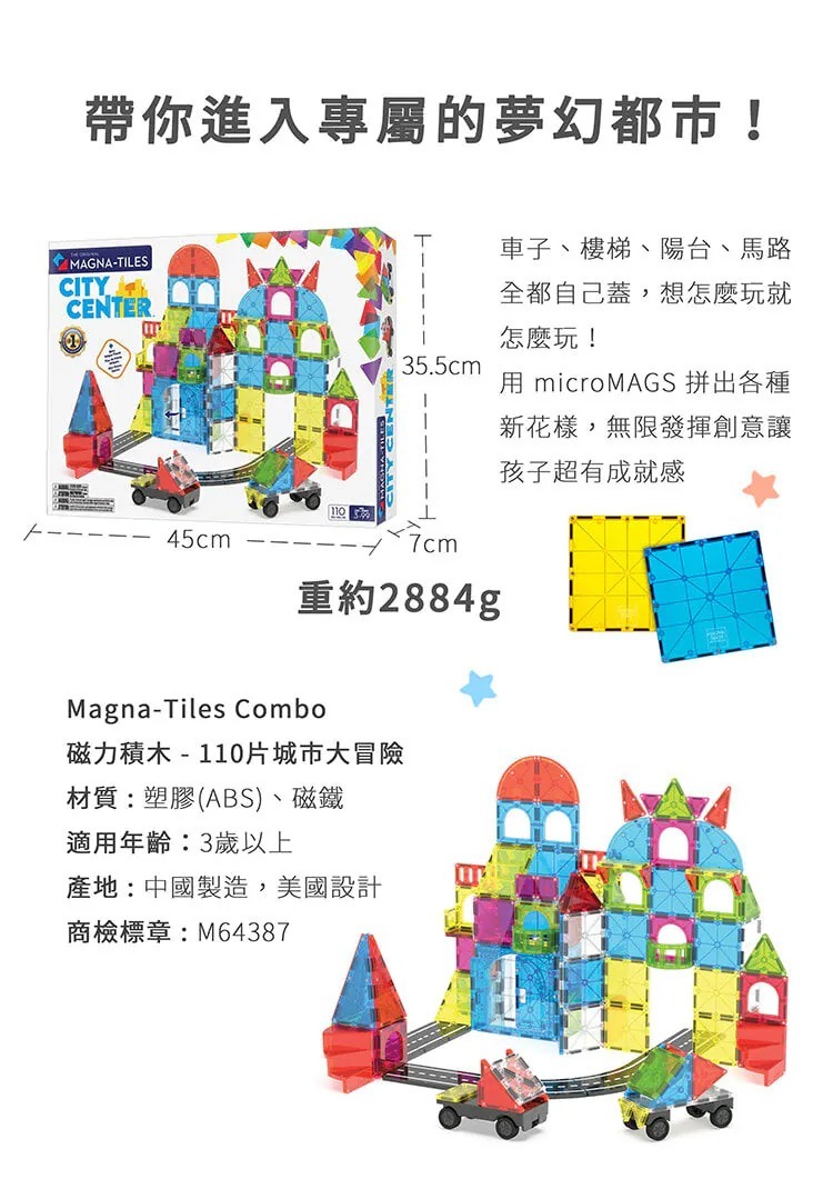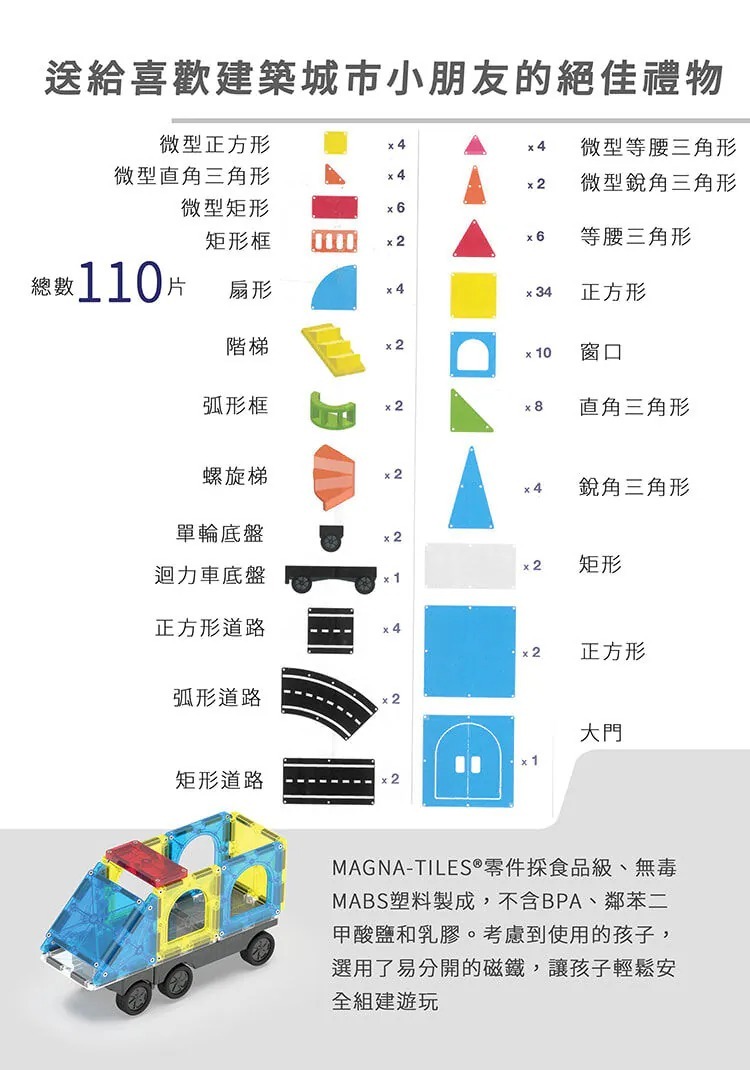 Magna-Tiles®Combo 磁力積木-110片城市大冒險