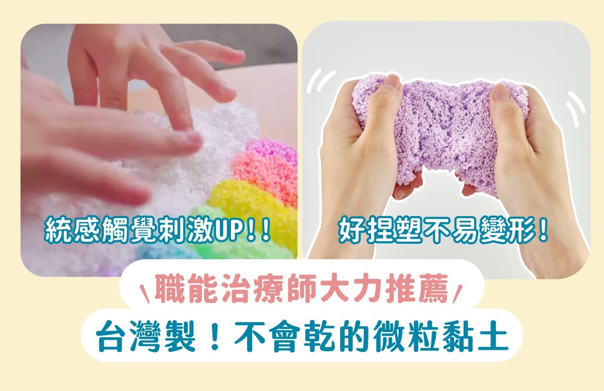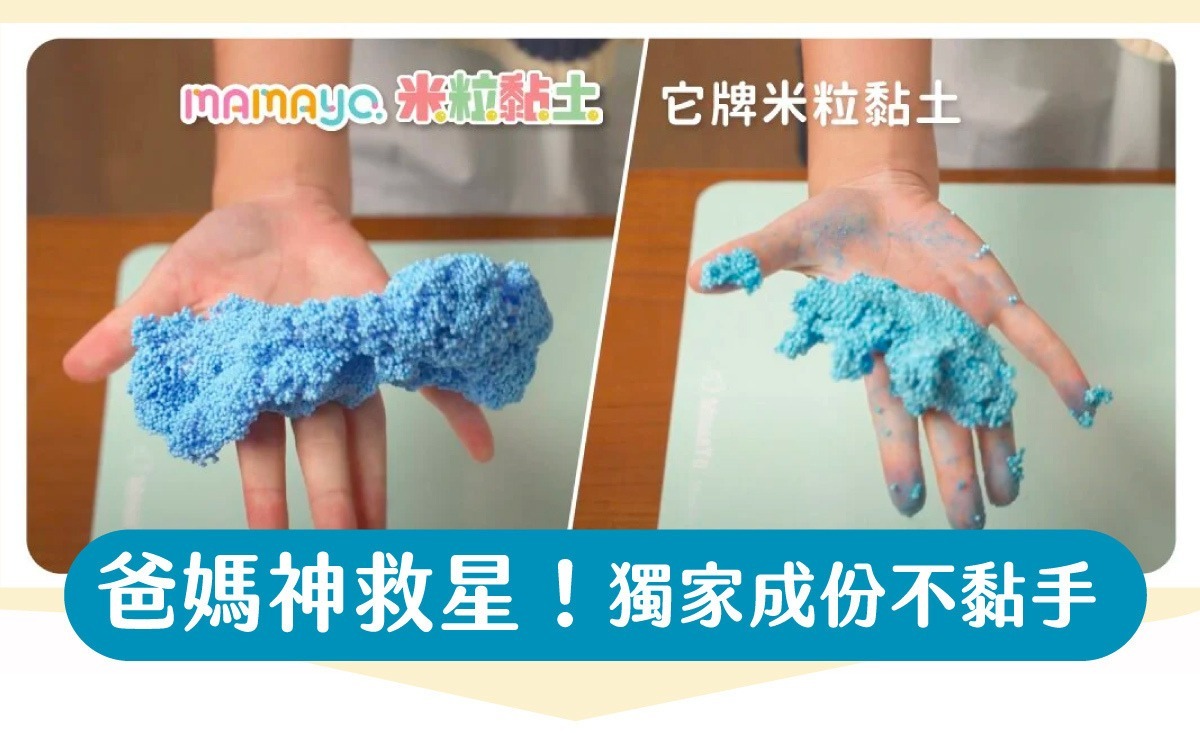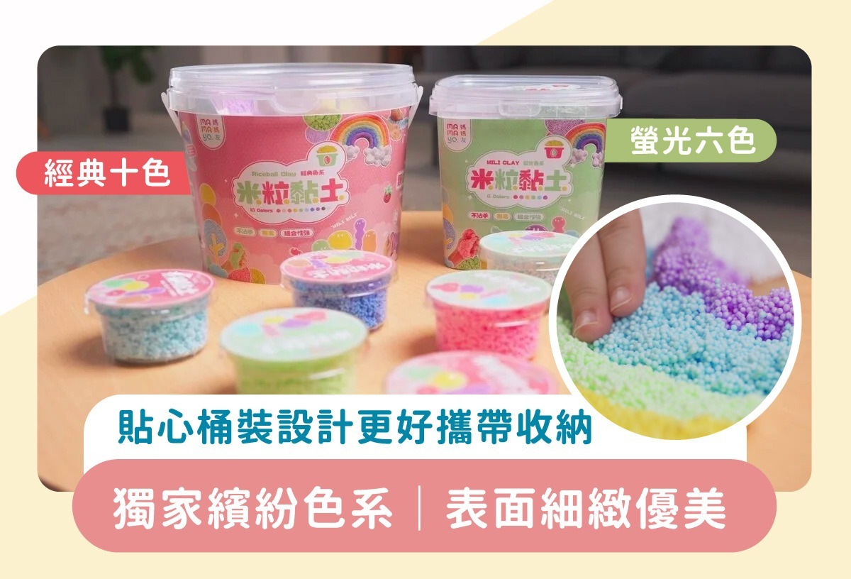 米粒黏土是職能治療師極力推薦的育兒良品,除了可訓練手部肌肉外,更可在玩黏土的過程中幫助情緒穩定。相較於傳統市售粒粒黏土完全不沾黏,米粒黏土的特殊成分,改善傳統粒粒黏土容易沾手、染色的缺點,讓孩子遊玩時不再擔心手上會覆滿殘留的色粉,讓創作過程同樣能夠保持優雅愉悅的心情。