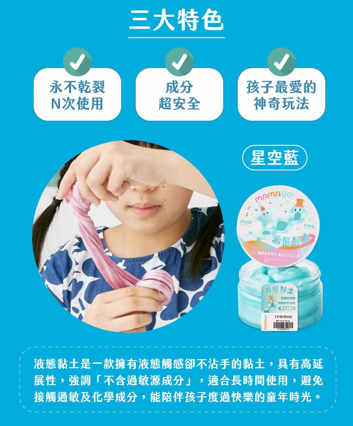 相較於傳統史萊姆延展度更好,但是卻完全不沾手,不用擔心成分問題可以玩得很放心,不但能減壓,就連身為媽媽的我也很愛玩!
