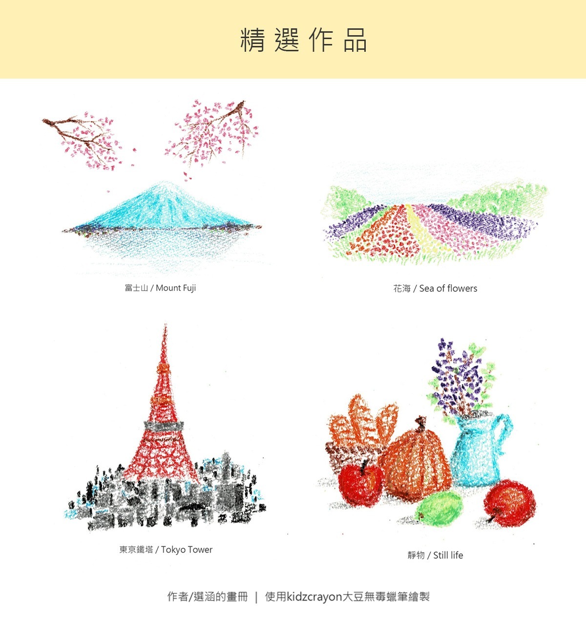 不同於傳統蠟筆,kidzcrayon蠟筆的色票皆有經過重新挑選,嘗試在不同紙質上的顯色表現
