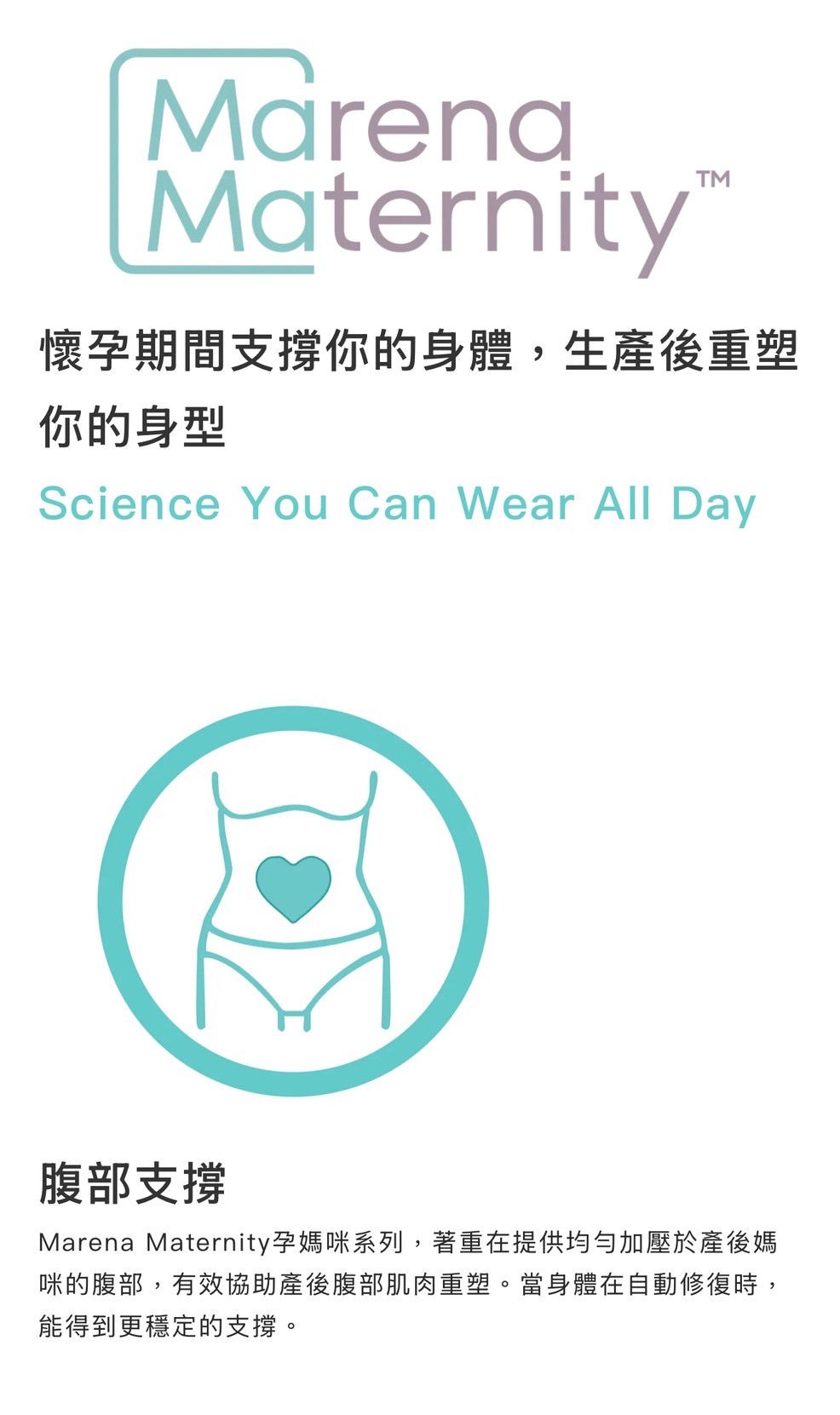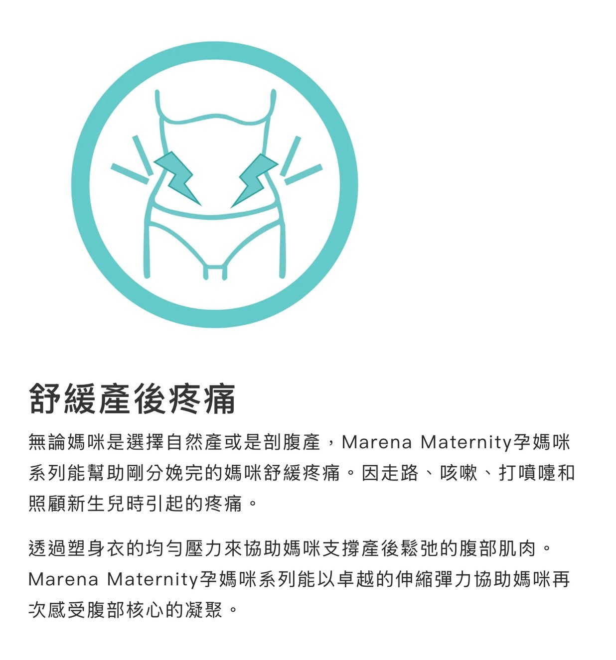 Marena Maternity™ 產後塑身衣可加強產後身體的恢復能力,經過專業設計,幫助您快速恢復腰圍。