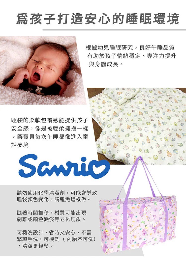睡袋的柔軟包覆感能提供孩子安全感,像是被輕柔擁抱一樣,讓寶貝每次午睡都像進入童話夢境