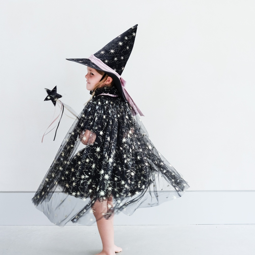 神秘的黑色薄紗層層疊疊,點綴著星星光芒,打造最迷人的小女巫