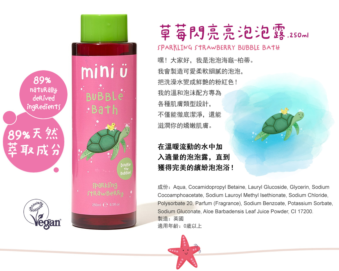 我會製造可愛柔軟細膩的泡泡,把洗澡水變成鮮艷的粉紅色!我的溫和泡沫配方專為各種肌膚類型設計,不僅能徹底潔淨,還能滋潤你的嬌嫩肌膚。