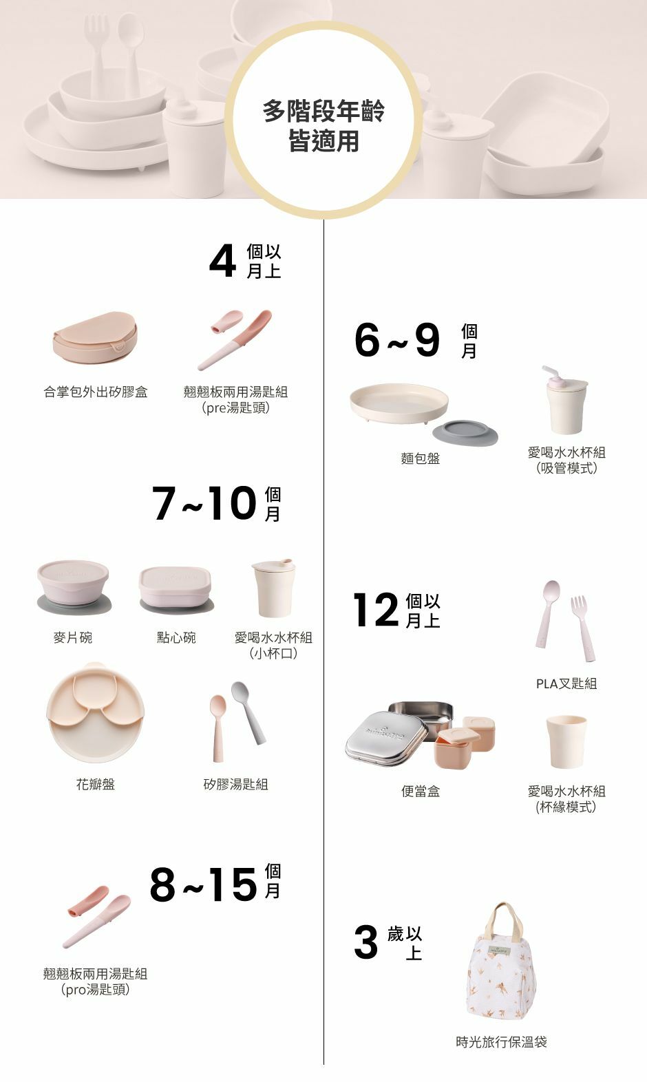 從細長型Pre (4-8個月) 到寬口型Pro (8-15個月)