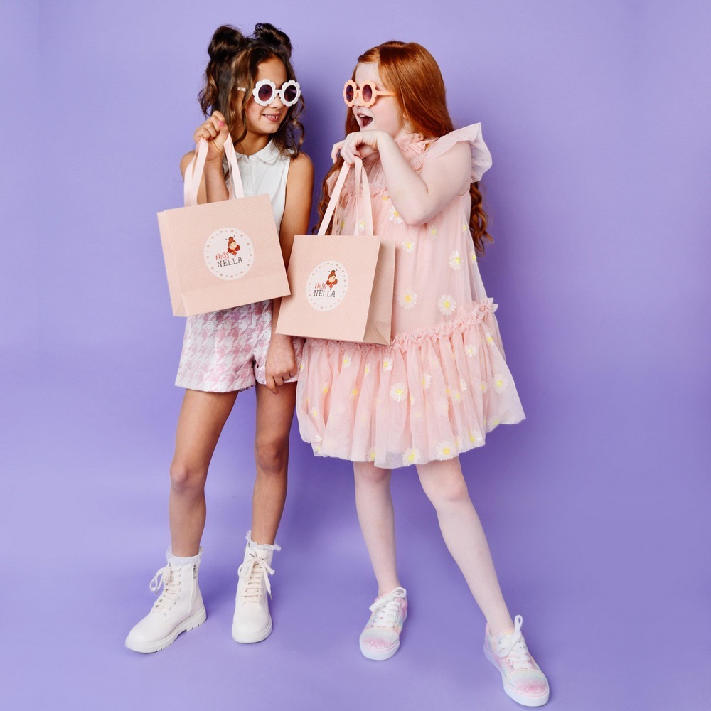 ★經典的品牌粉緞帶提把及厚磅禮物袋