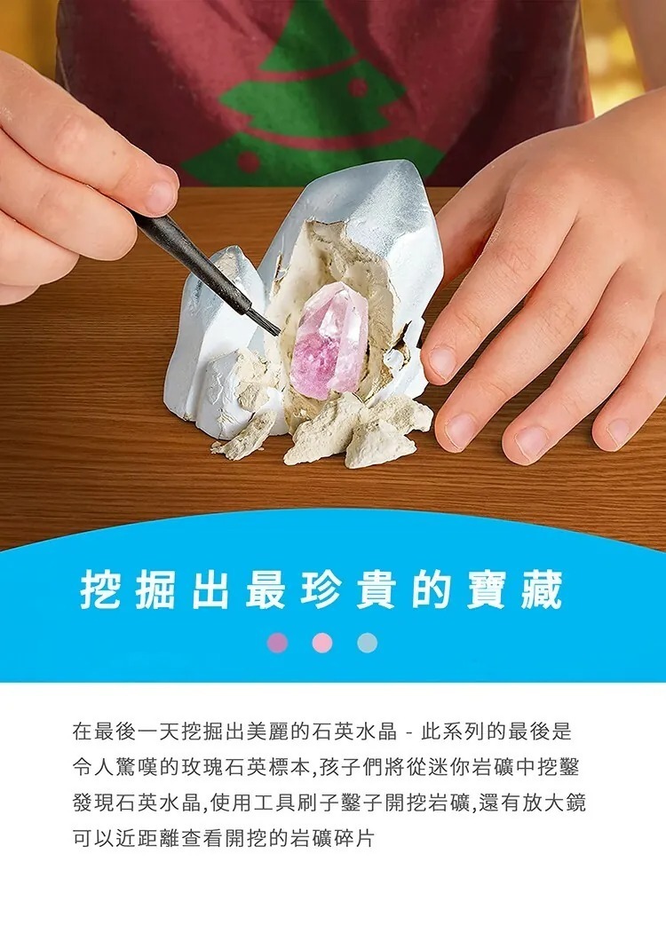 這款岩石收集套組激發孩子們對地質學的興趣,並教他們了解化石、岩石和水晶等礦物