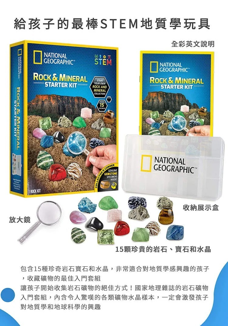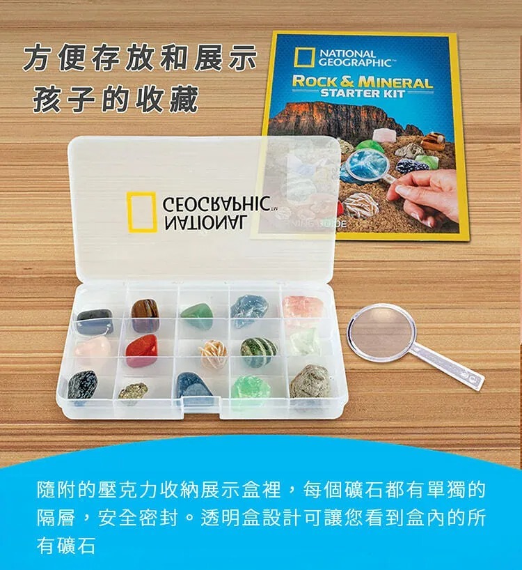 讓孩子開始收集岩石礦物的絕佳方式!國家地理雜誌的岩石礦物入門套組,內含令人驚嘆的各類礦物水晶樣本,一定會激發孩子對地質學和地球科學的興趣