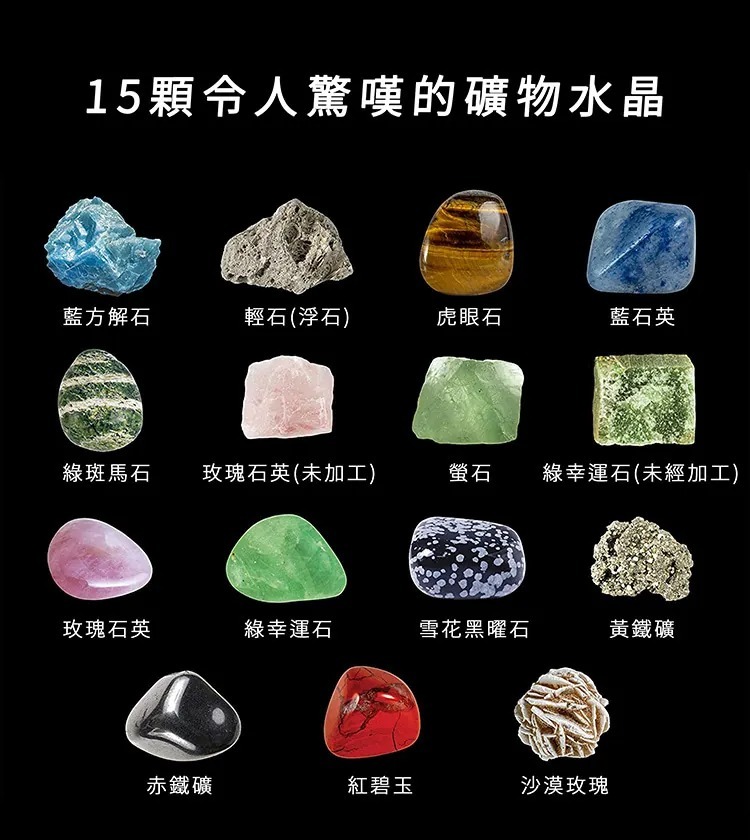 包含15種珍奇岩石寶石和水晶,非常適合對地質學感興趣的孩子,收藏礦物的最佳入門套組