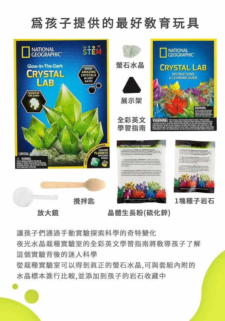 NATIONAL GEOGRAPHIC 國家地理 晶透奇蹟(夜光水晶栽種實驗室)-附螢石水晶1入