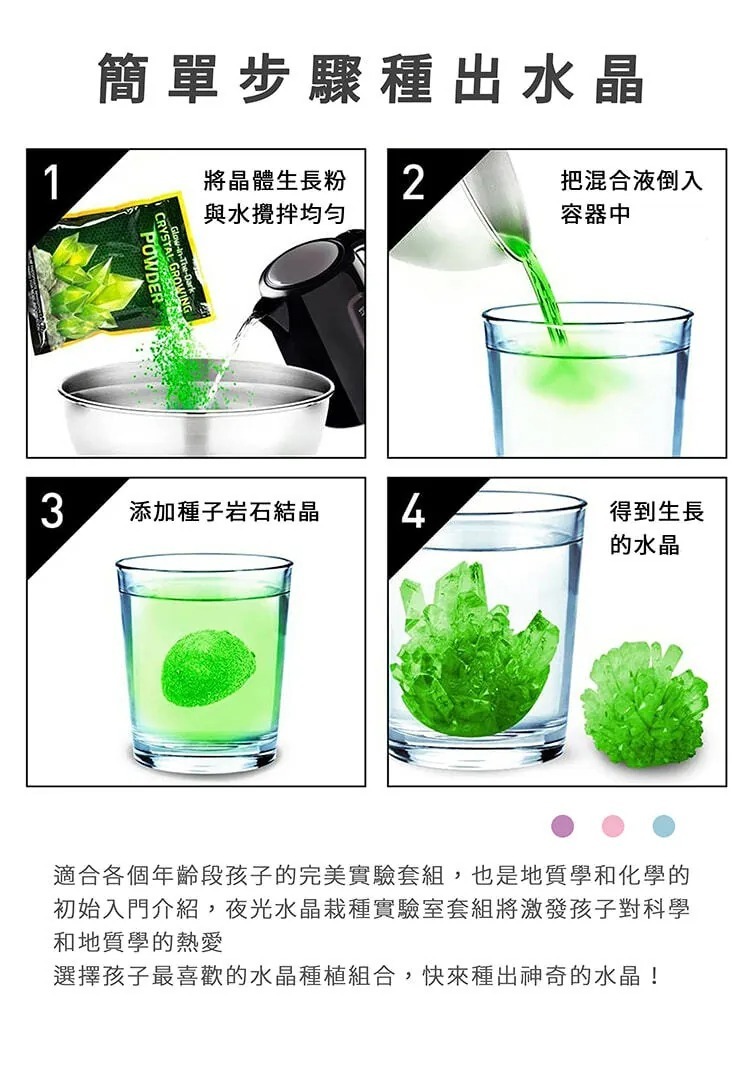 選擇孩子最喜歡的水晶種植組合,快來種出神奇的水晶!