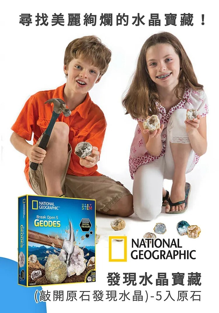 NATIONAL GEOGRAPHIC 國家地理 發現水晶寶藏(敲開原石發現水晶)-5入原石