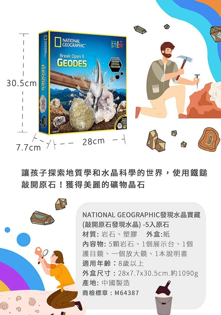 讓孩子探索地質學和水晶科學的世界,使用鐵鎚敲開原石!獲得美麗的礦物晶石