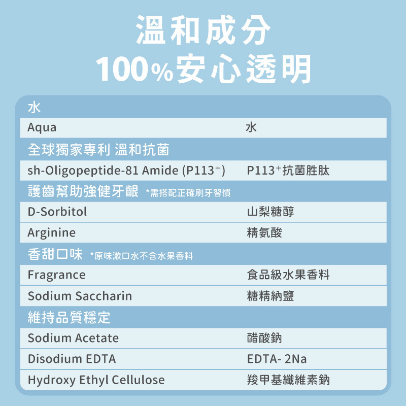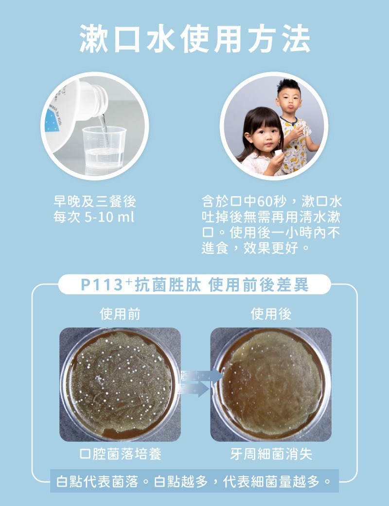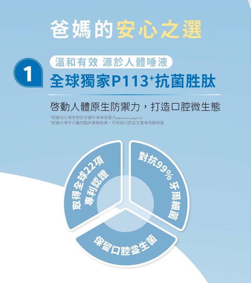 ‧ 添加美國獨家專利P113+抗菌胜肽