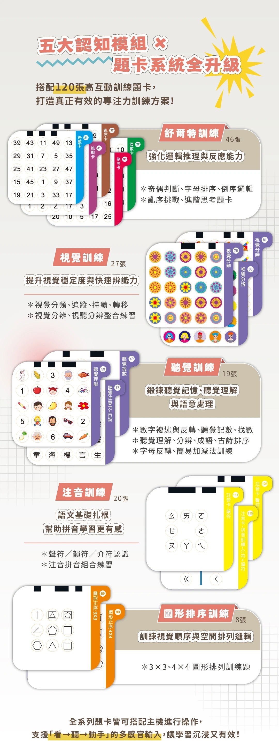 ◆升級120張題卡,更多方提升專注力