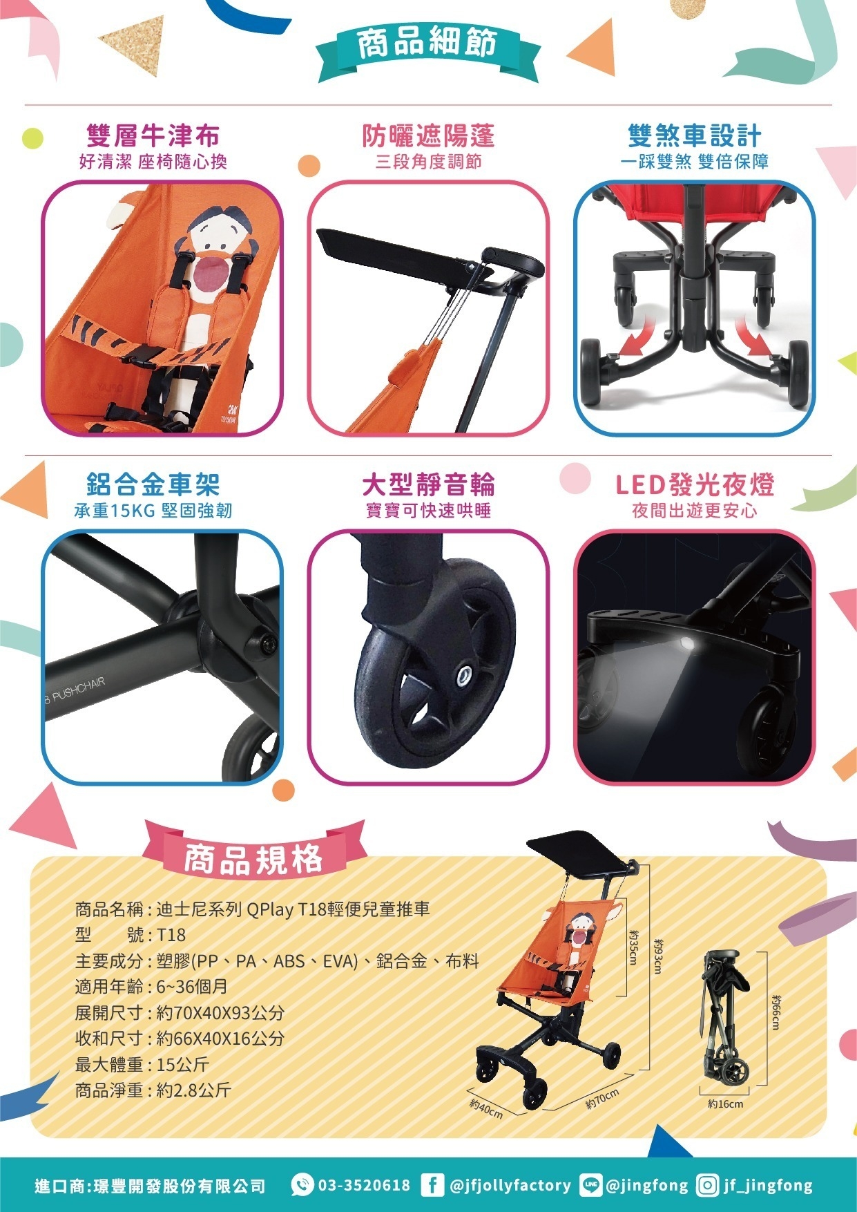 ✓防曬遮陽頂蓬:三段角度輕鬆調節