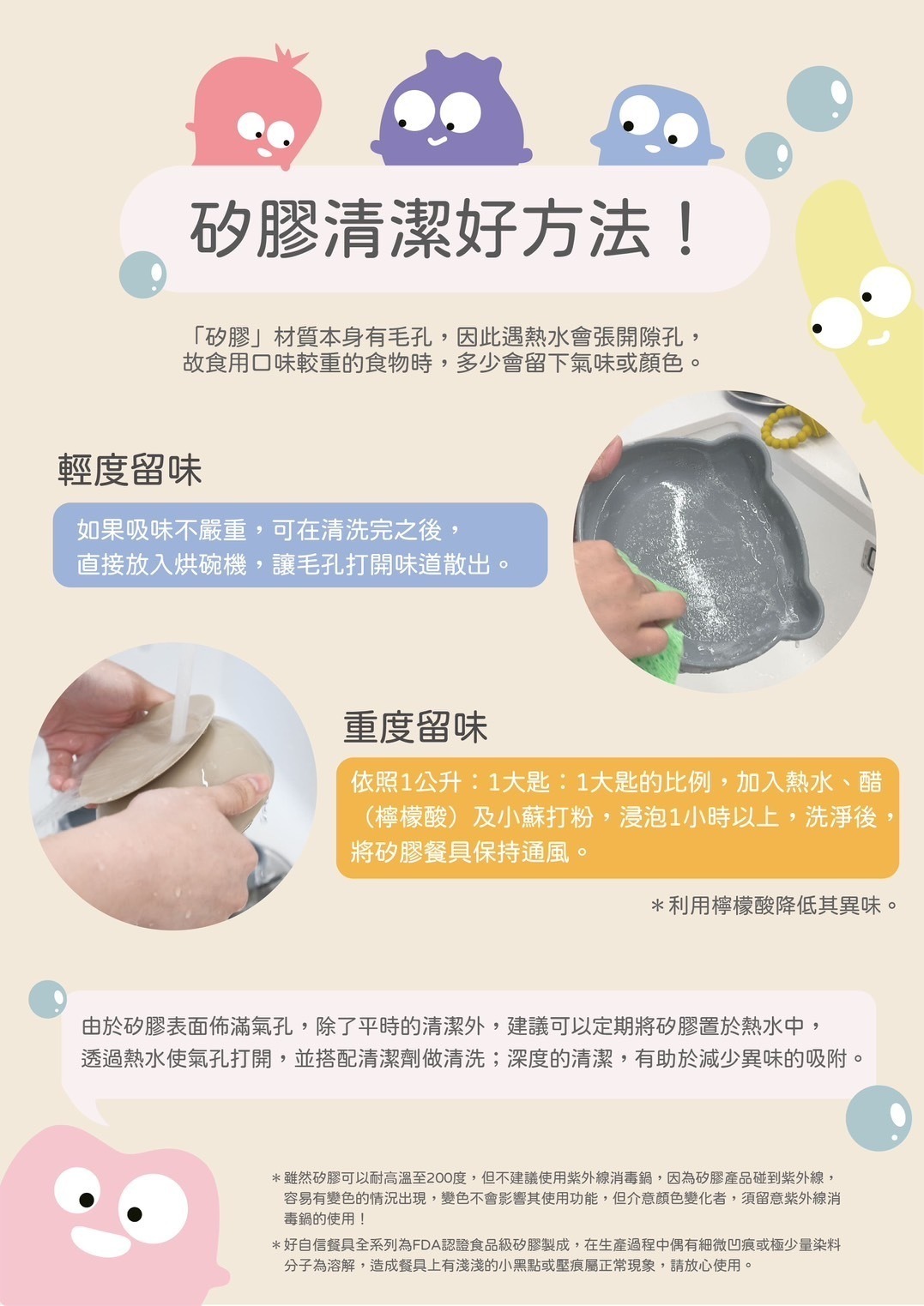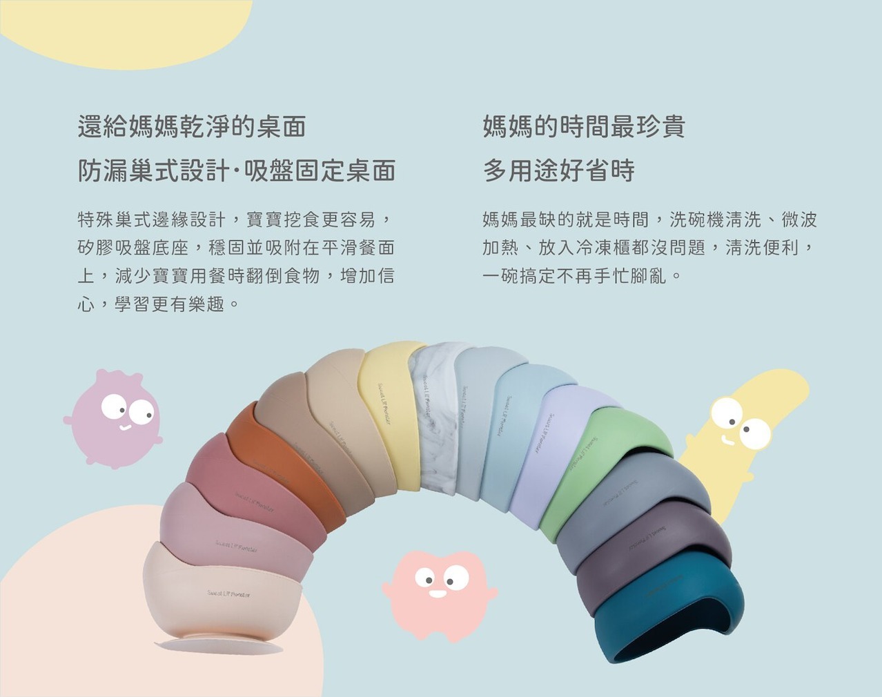 柔軟的矽膠材質╳巢式防漏設計╳吸盤固定於桌面