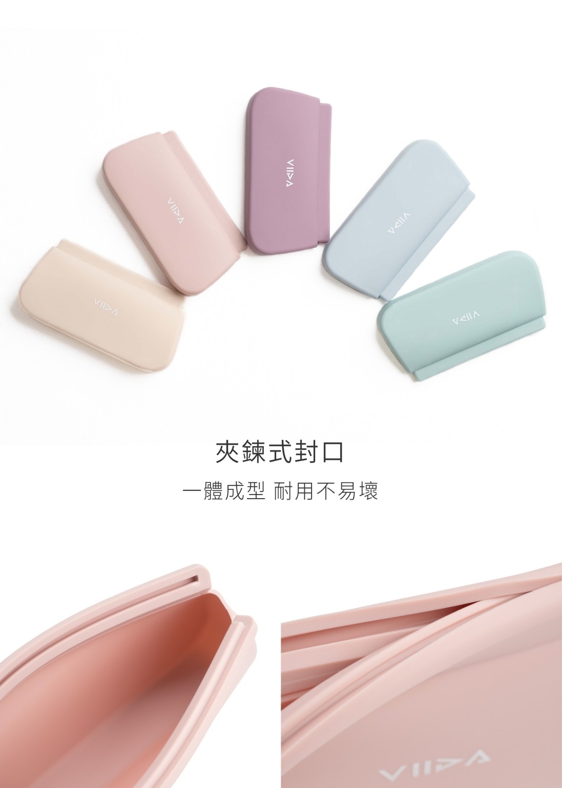 食品級無毒矽膠材質,防水防油的特性使用後易清洗。一體成型夾鍊設計,五款經典色,不論是寶貝的餐具還是媽咪的化妝品,將各類小物分門別類的最佳幫手,包包再大也不必東翻西找的祕訣!