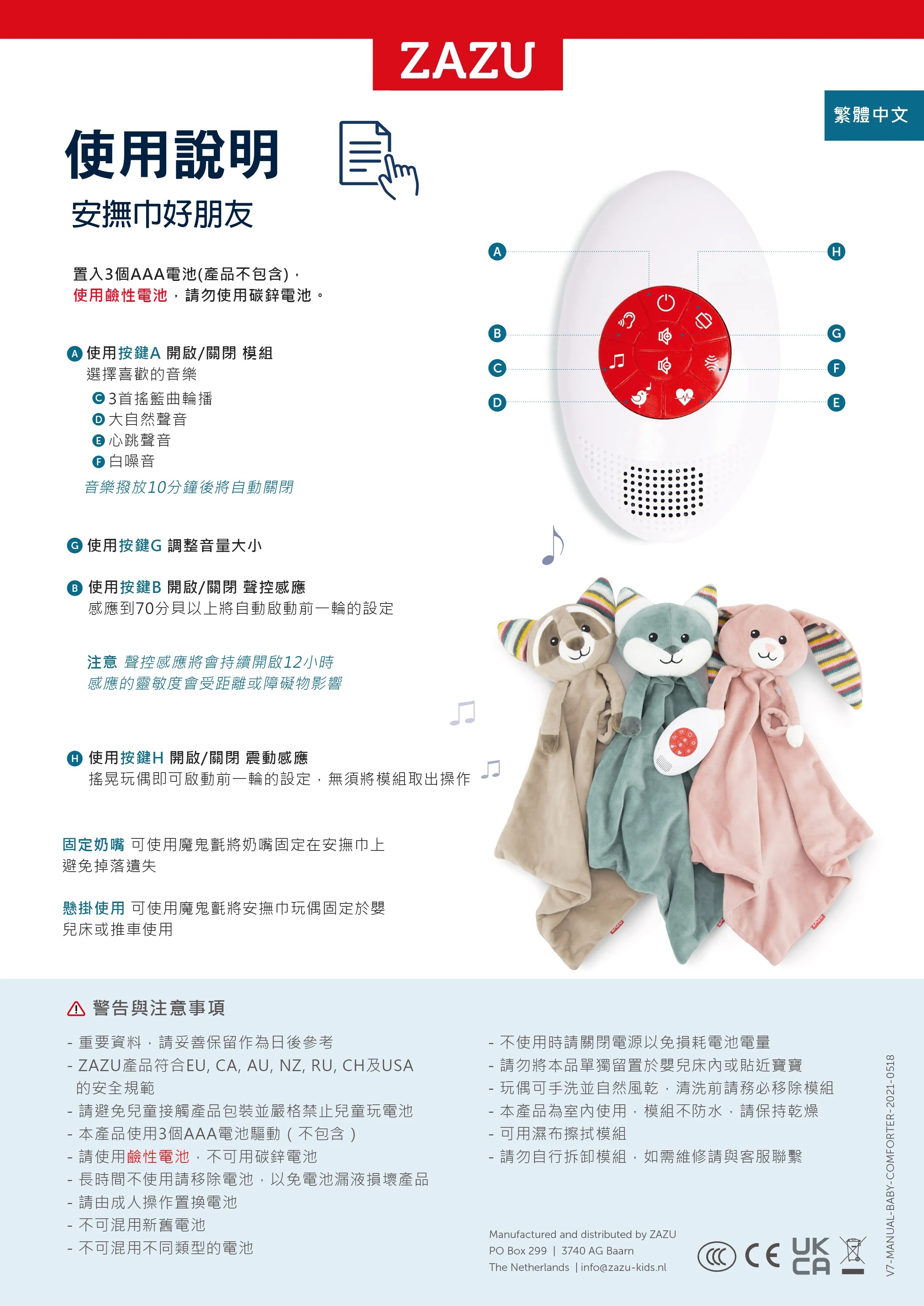 奶嘴扣:玩偶可用來固定奶嘴避免掉落。