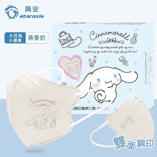 款       式 :   三麗鷗成人小顏3D鋼印-大耳狗時尚款-50入