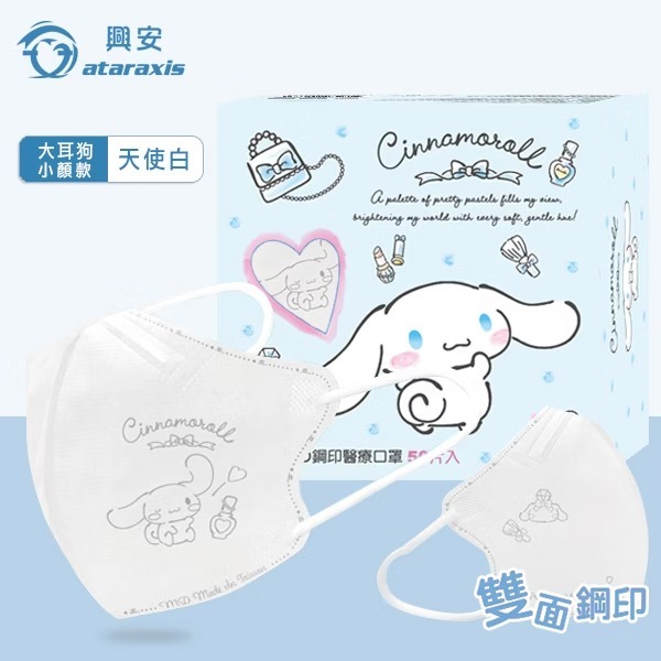 款 式 : 三麗鷗成人小顏3D鋼印-大耳狗時尚款-50入